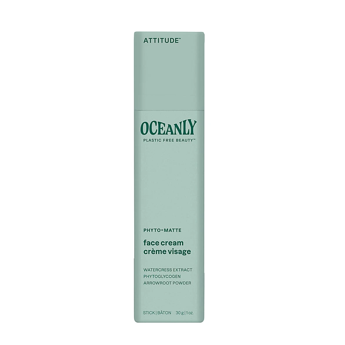 PHYTO-MATTE unscented face cream from Oceanly’s plastic-free ATTITUDE range comes in recyclable cardboard tube packaging from sustainably managed forests to stabilize skin while caring for the environment.