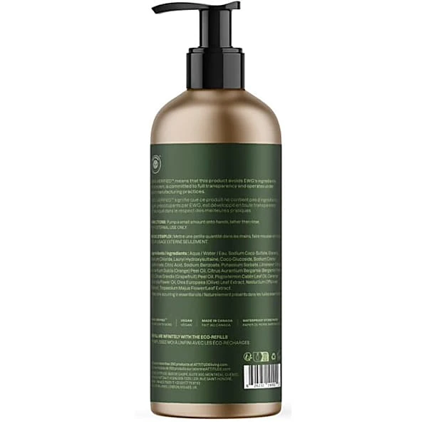 Infused with an invigorating and fruity aromatic blend, the Super Leaves Essential Oils Bergamot & Ylang Ylang Hand Soap from Attitude is made with 98.9% naturally sourced ingredients that leave hands clean and invigorated.