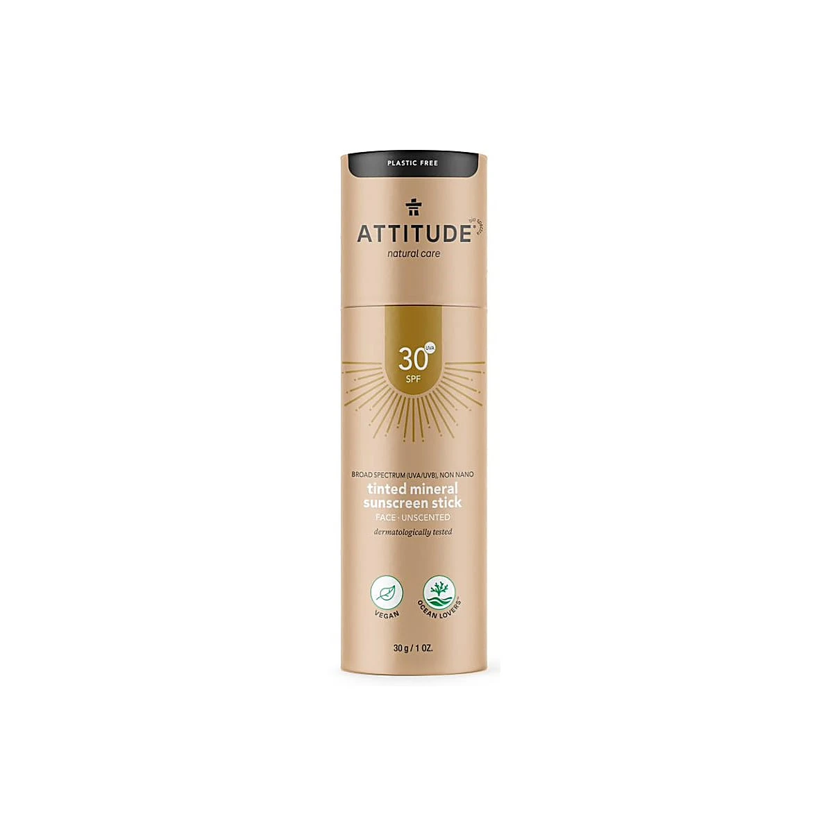 Attitude Mineral Sunscreen Tinted Face Stick, with its non-greasy and clear formula, creates a physical barrier to protect your skin against both UVA and UVB rays while giving a natural skin tone effect. By using natural ingredients like non-nano zinc oxide, this mineral and hypoallergenic sunscreen offers broad-spectrum protection. Dermatologically tested and unscented, it is gentle on sensitive skin.