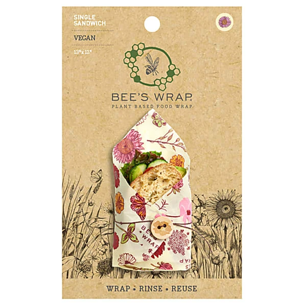 The ‘regular’ beeswax cloth has long proven itself as an excellent alternative to packaging material such as aluminum and plastic cling film. Bee’s Wrap now also has a vegetable version – the Vegan Wrap. The new wrap does not contain beeswax, but is made with vegetable wax, organic coconut oil and tree resin. Of course, the cloth is still reusable, washable and also biodegradable. The colorful design is based on the wild flowers in a beautiful meadow.