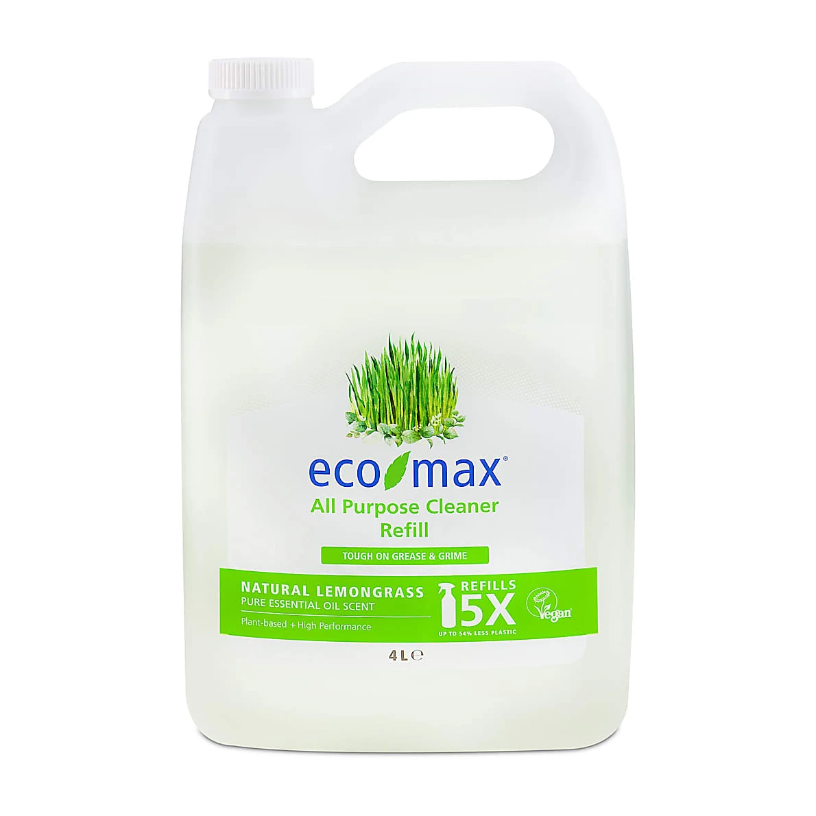 Eco-Max All Purpose Cleaner is a brilliantly effective combination of potent plant-based readily biodegradable ingredients for everyday spray and wipe cleaning of water washable hard surface areas in the kitchen and around the home. This pH balanced formula benefits from the refreshingly pure cleaning and odour neutralizing properties of lemongrass essential oil . Its fresh zesty aroma is a joy to use. As with all Eco-Max products, All Purpose Cleaner contains no harsh chemicals, synthetic fragrances or toxic preservatives.