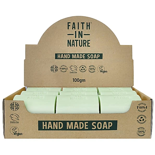 The Faith in Nature Box of 18 Unwrapped Rosemary Soaps is great value for money. Bulk buy your bar soap and save around 40p per bar! Faith in Nature Rosemary Soap is infused with uplifting rosemary and traditional herbal aromas, providing anti-bacterial benefits to soothe the skin while gently and effectively cleansing. These boxes of unwrapped soap offer a more sustainable way of reducing plastic waste in your body care regime, perfect for anyone wanting to be as kind to the environment as they are to their skin.