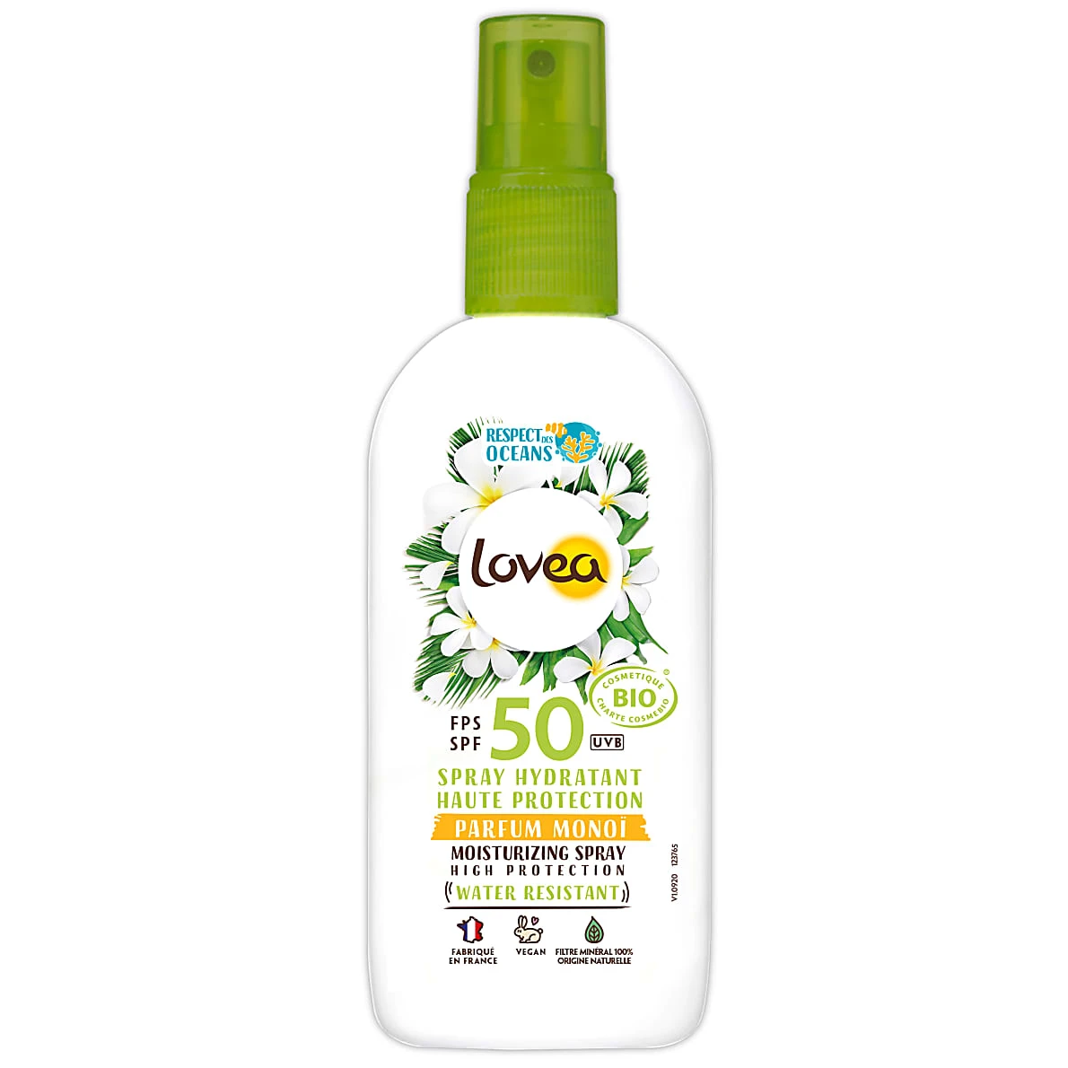 Lovea Moisturising Sunscreen Spray with SPF50 protects against UVA and UVB rays naturally.