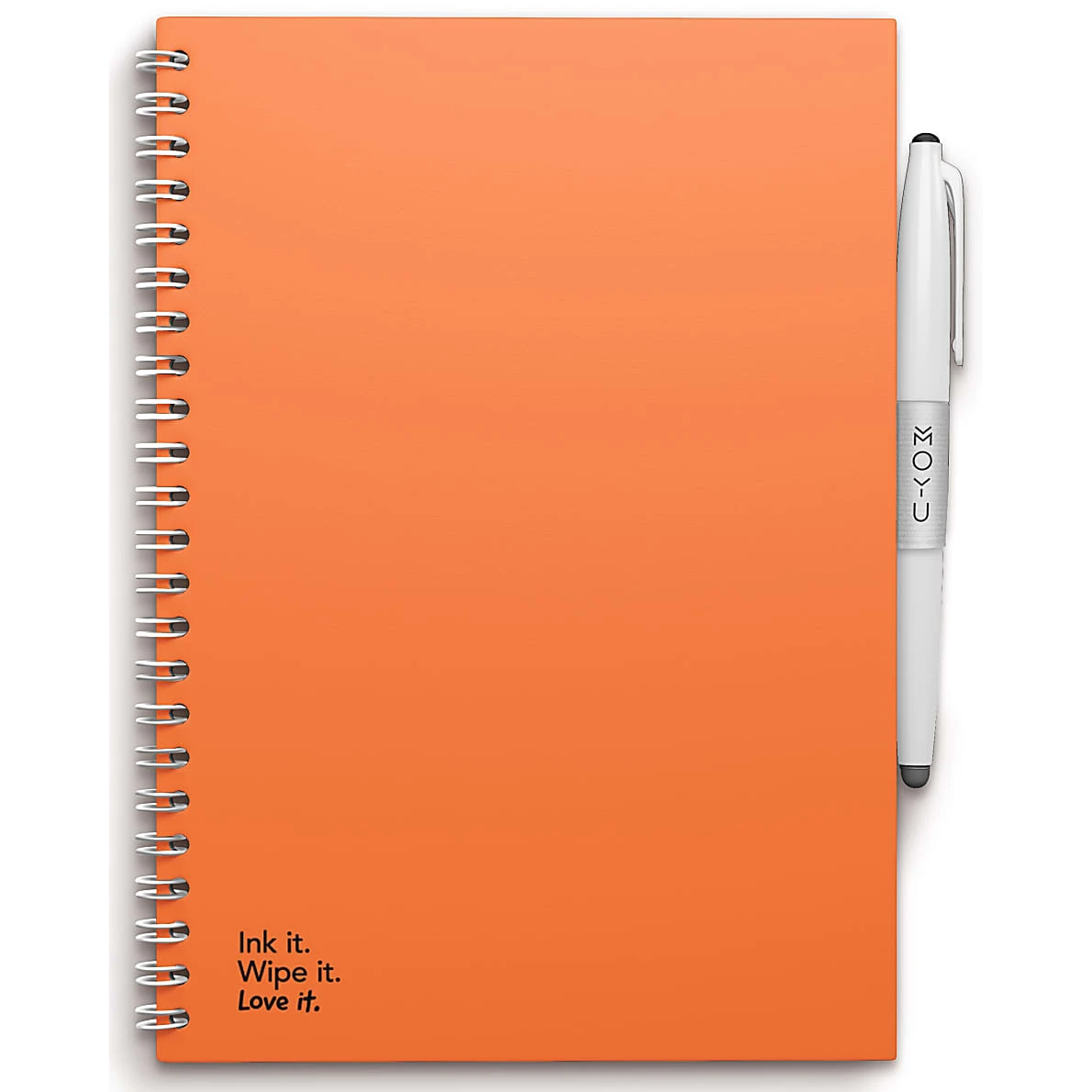 The MOYU Sunset Orange A5 Notebook with smooth, erasable and rewritable stone paper, contains blank, lined, grid and bullet journal pages – suitable for efficient working with more overview, focus and structure.