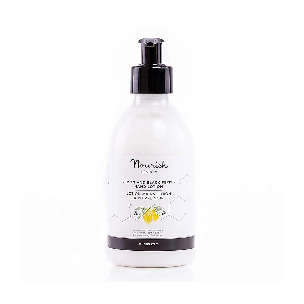 Massage Lemon & Black Pepper Hand Lotion into hands, concentrating on the backs of the hands.